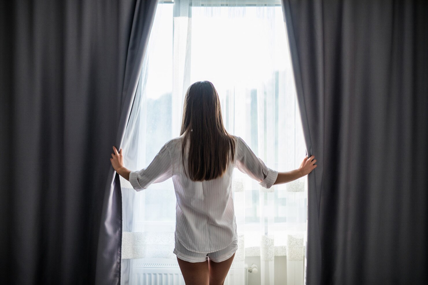 Человек закрыл лёгкие шторы на балконе. Солнце стало мягким. Комната как будто стала тише. Не темнее, а именно спокойнее. Это ощущение сложно описать, но его сразу замечают.